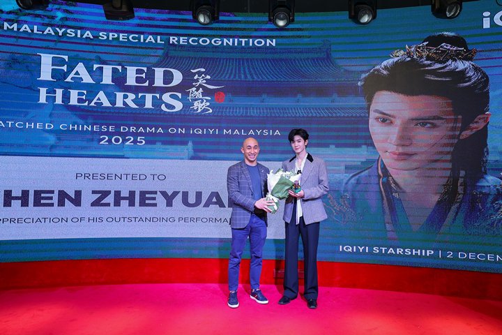 iQIYI Malaysia turut mengumumkan bahawa drama popular Fated Hearts (一笑随歌) telah dinobatkan sebagai “Drama Cina” Paling Ditonton di iQIYI Malaysia 2025”. Dinesh turut menyampaikan sejambak bunga kepada Chen sebagai tanda penghargaan.